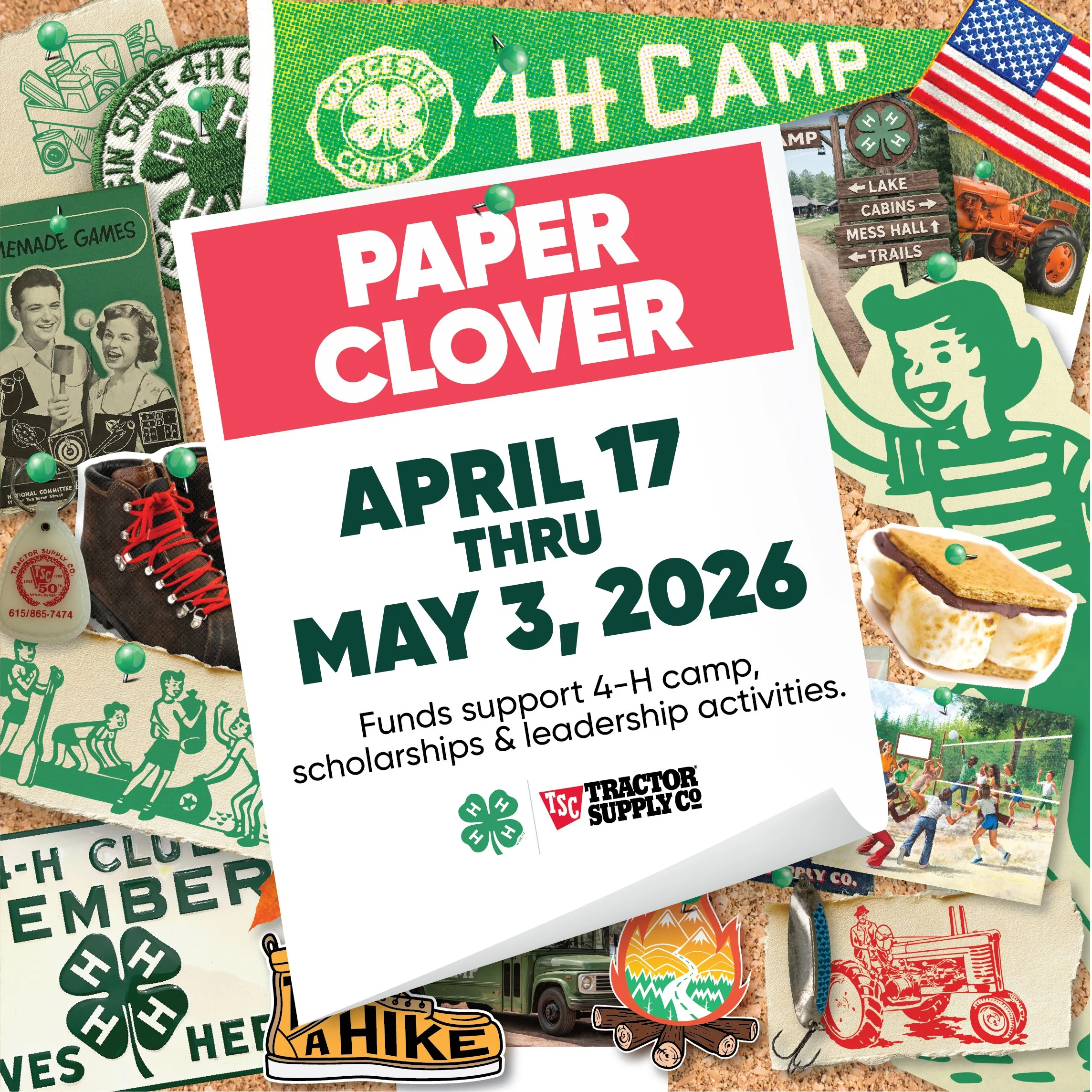 100 percent of funds raised through the bi-annual Paper Clover campaign directly benefits 4‑H youth. The Paper Clover campaign collects customer donations at the register to benefit local 4-H programs. TSC stores love to partner with local 4-H programs! Because each store has a different footprint and availability you should contact your local store manager to determine the best activities for your store location.